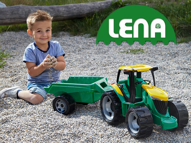 Firma LENA to renomowany producent zabawek, który od lat dostarcza dzieciom na całym świecie wysokiej jakości zabawki, a zwłaszcza pojazdy przeznaczone dla dzieci od dwóch lat i starszych. Marka LENA specjalizuje się w tworzeniu zabawek inspirowanych maszynami budowlanymi, rolniczymi oraz samochodami. To kategoria samochodów i pojazdów, które możemy na co dzień spotkać w naszym otoczeniu. Zabawkowe traktory z przyczepami, koparki, buldożery to zabawki ponadczasowe, które pozwalają dzieciom nie tylko na świetną zabawę, ale również na rozwijanie wyobraźni i zdolności manualnych.